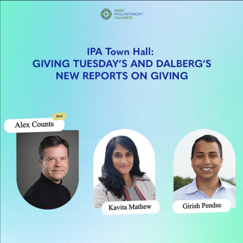 The India Philanthropy Alliance hosted a Virtual Town Hall on October 23 with Kavita Mathew, Senior Advisor for Giving Tuesdayin India, and Girish Pendse, Associate Partner at Dalberg Advisors, about their newly released reports on giving trends in India and the U.S. respectively.